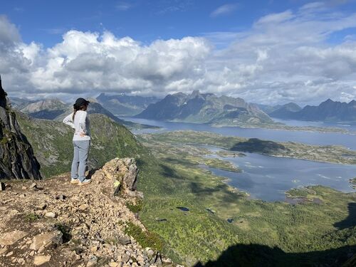 今回の旅行のゴールであるロフォーテン諸島へ。 いくつものフィヨルドと切り立った山々、かわいい漁師小屋の並ぶ港町の景観が楽しめる場所で、ノルウェー国内外から観光客が訪れます。 7月最終週に行ったのでノルウェー人のバカンスシーズンのピークは過ぎ…