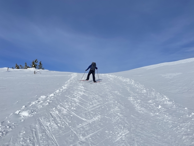とにかく雪原を歩く、というイメージでいたクロカンですが、どこかピークを目指して登る、というコース取りもありなんだなあ。と感じたのがこのコースです。