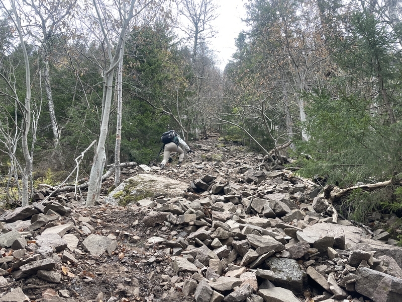 ここ以前のより細かい石が多いゾーンの方が落石に気を使いそうです。