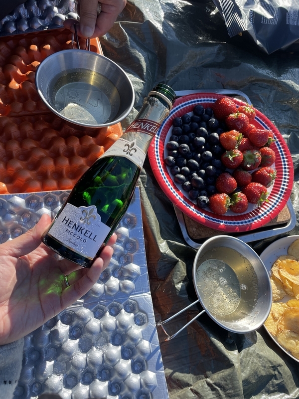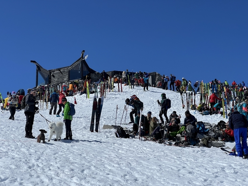 ランチを食べたり、シャンパン飲んだり、賑やかな山頂。